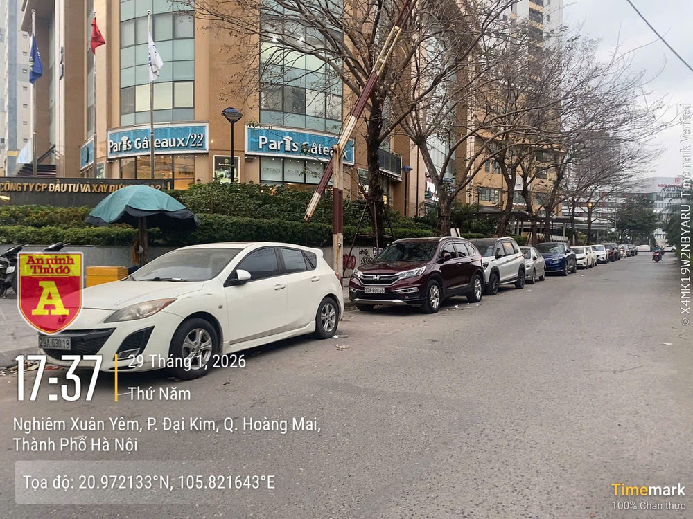 Hàng loạt ô tô ngang nhiên đỗ giữa lòng đường tại đường Nghiêm Xuân Yêm