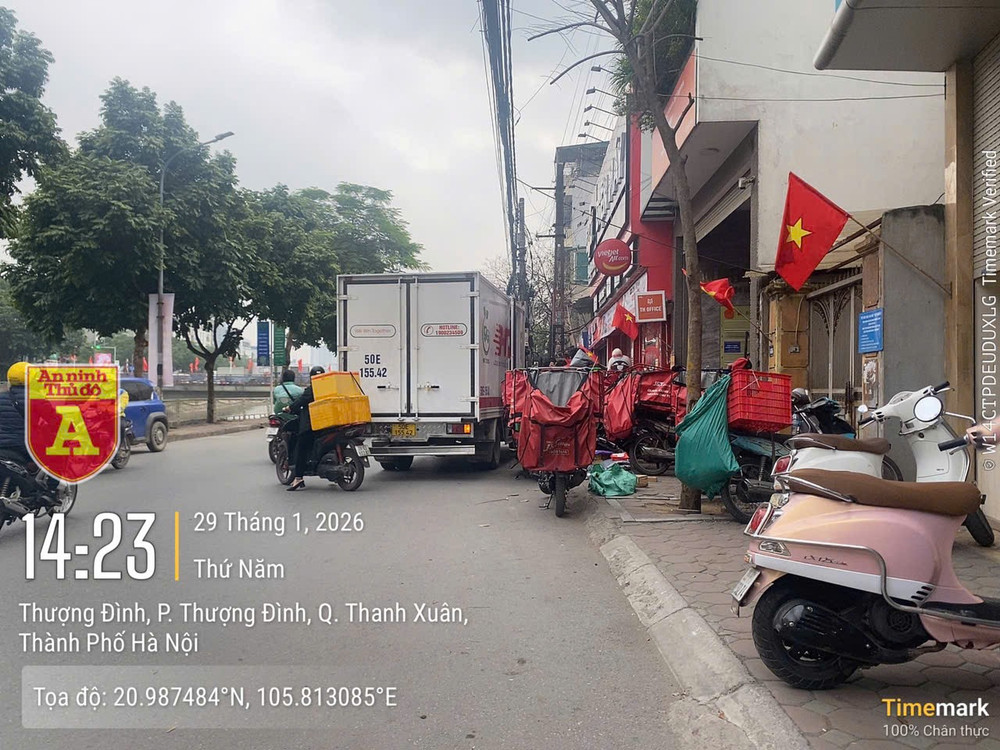 Cảnh lấn chiếm vỉa hè và lòng đường trên đường Khương Đình
