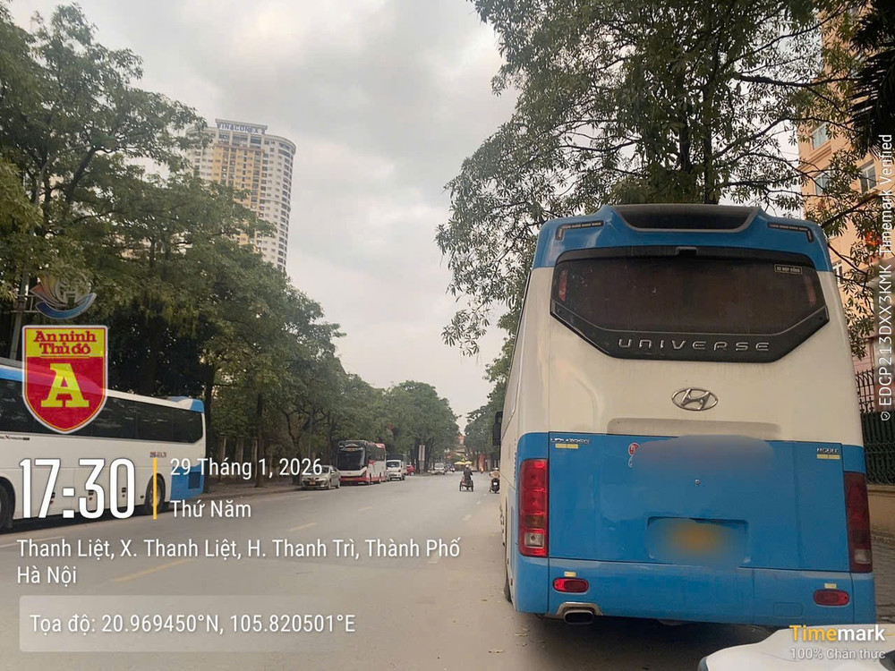 Ô tô chở khách đỗ dưới lòng đường Thanh Liệt là tình trạng phổ biến.