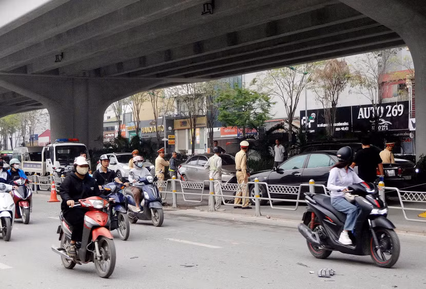 Ngay sau khi tiếp nhận tin báo, Đội Cảnh sát giao thông số 6 - Phòng CSGT Công an thành phố Hà Nội đã có mặt tại hiện trường, tổ chức phân luồng giao thông, đồng thời phối hợp các đơn vị liên quan tiến hành khám nghiệm, điều tra nguyên nhân vụ tai nạn.