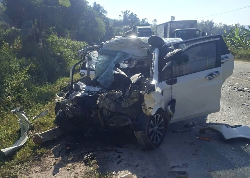 Cú va chạm mạnh khiến xe 7 chỗ biến dạng, 4 người P.V.K, T.T.L, N.Đ.V và N.T.U.S tử vong tại chỗ.