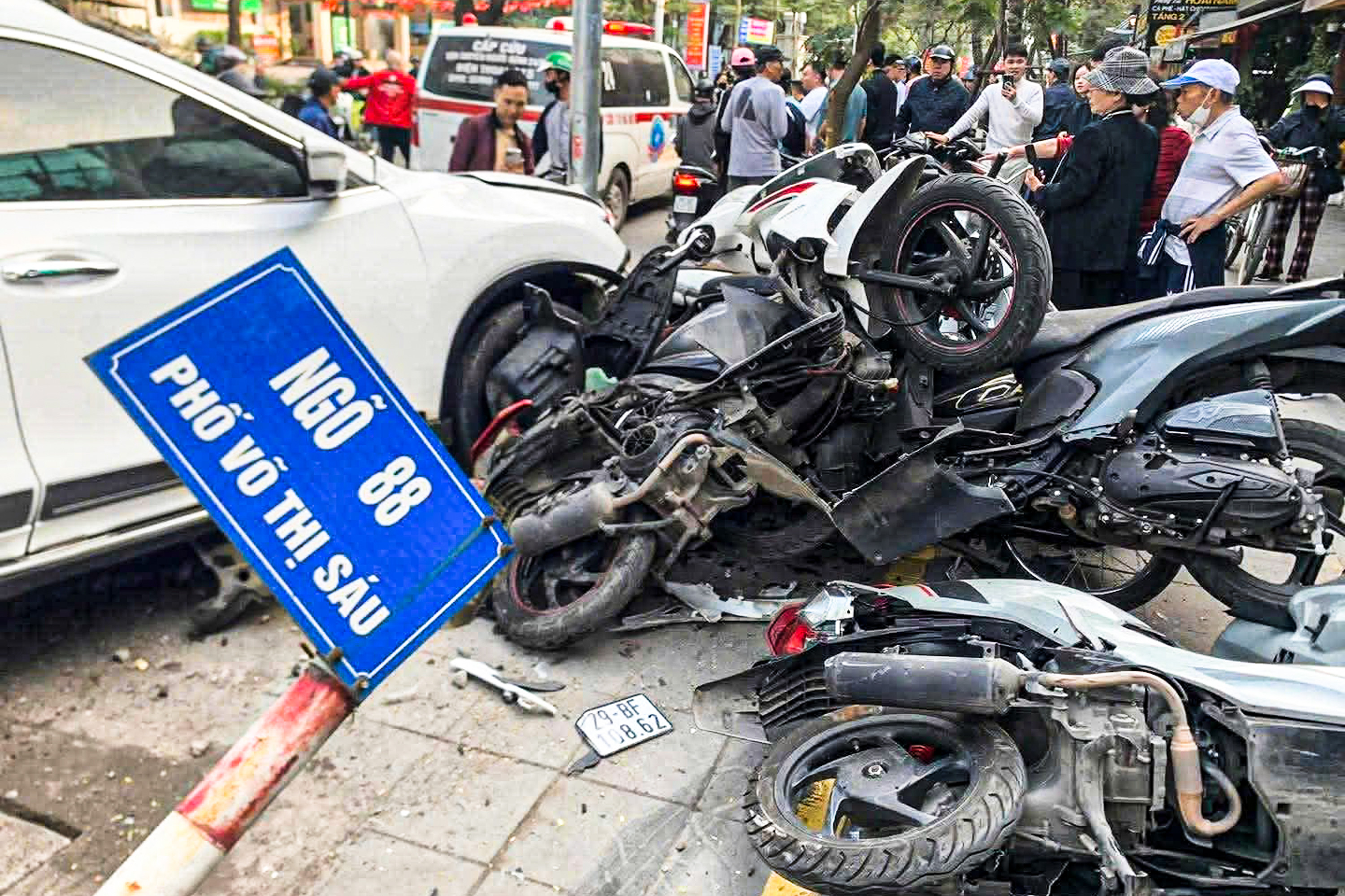 Theo thông tin ban đầu, vào thời điểm trên, một ô tô con hiệu Nissan X-Trail mang biển kiểm soát 30G-476.53 đang đi trên phố Võ Thị Sáu theo hướng Trần Khát Chân. Khi đến khu vực gần ngõ 88, chiếc xe bất ngờ mất kiểm soát, lao thẳng lên vỉa hè.
