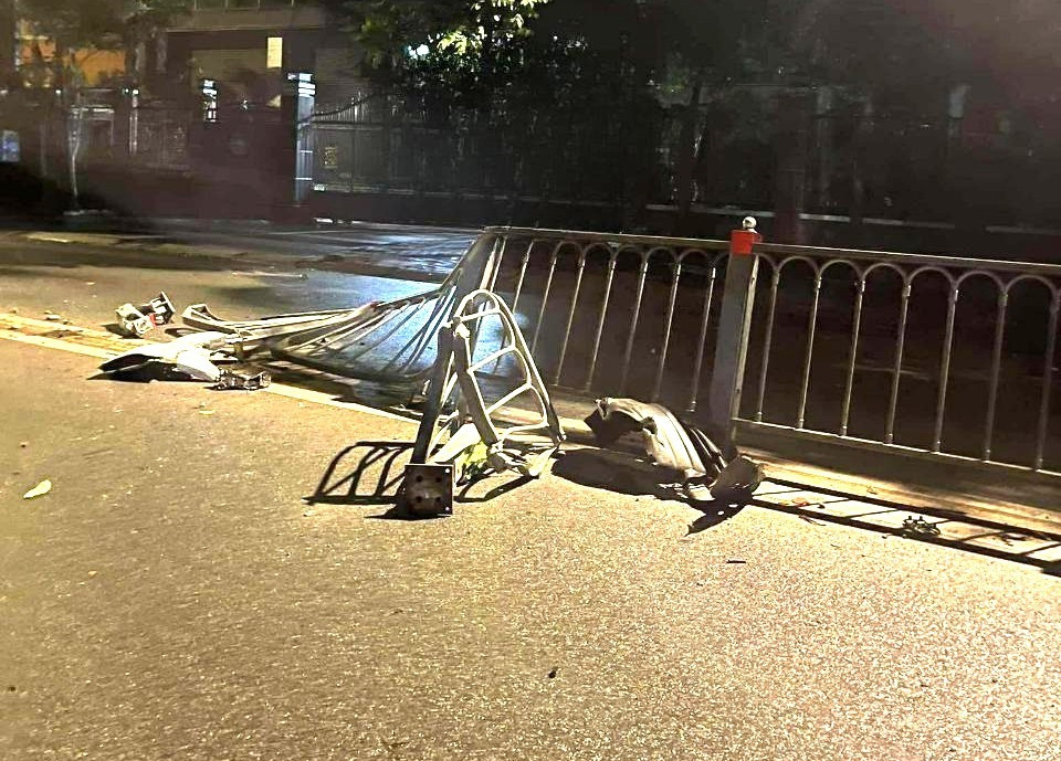 Dải phân cách giữa đường bị hư hỏng sau khi ô tô tông vào