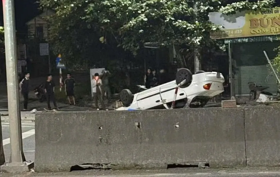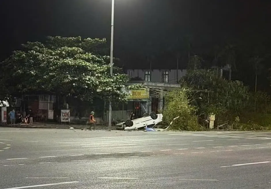Thông tin ban đầu, vào khoảng 23h ngày 11-11, xe ô tô biển kiểm soát TP Đà Nẵng đang di chuyển thì đâm vào biển báo rồi nằm lật ngửa trên đường.