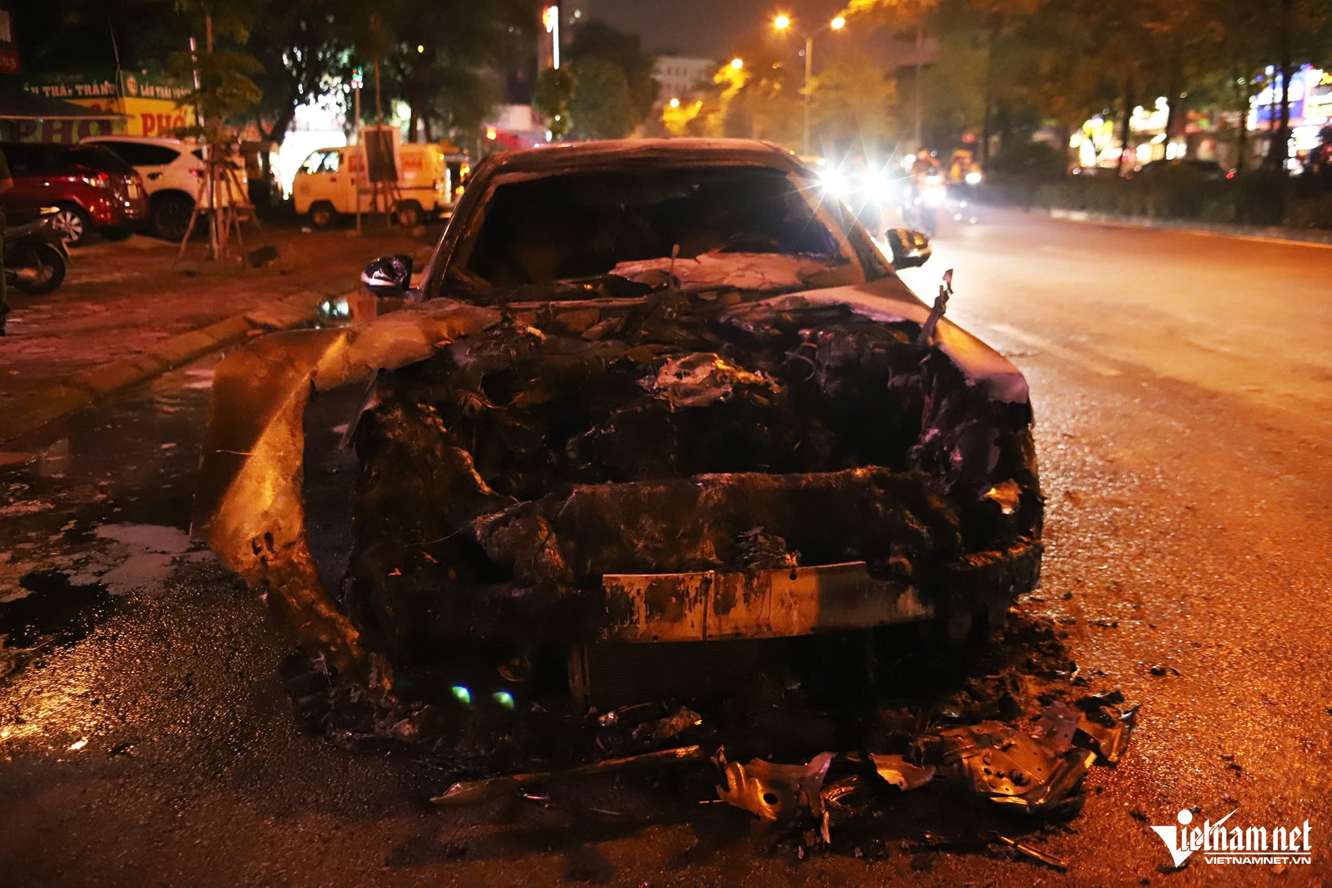 Hiện trường vụ cháy ô tô trên phố Nguyễn Hoàng. Ảnh: Đình Hiếu