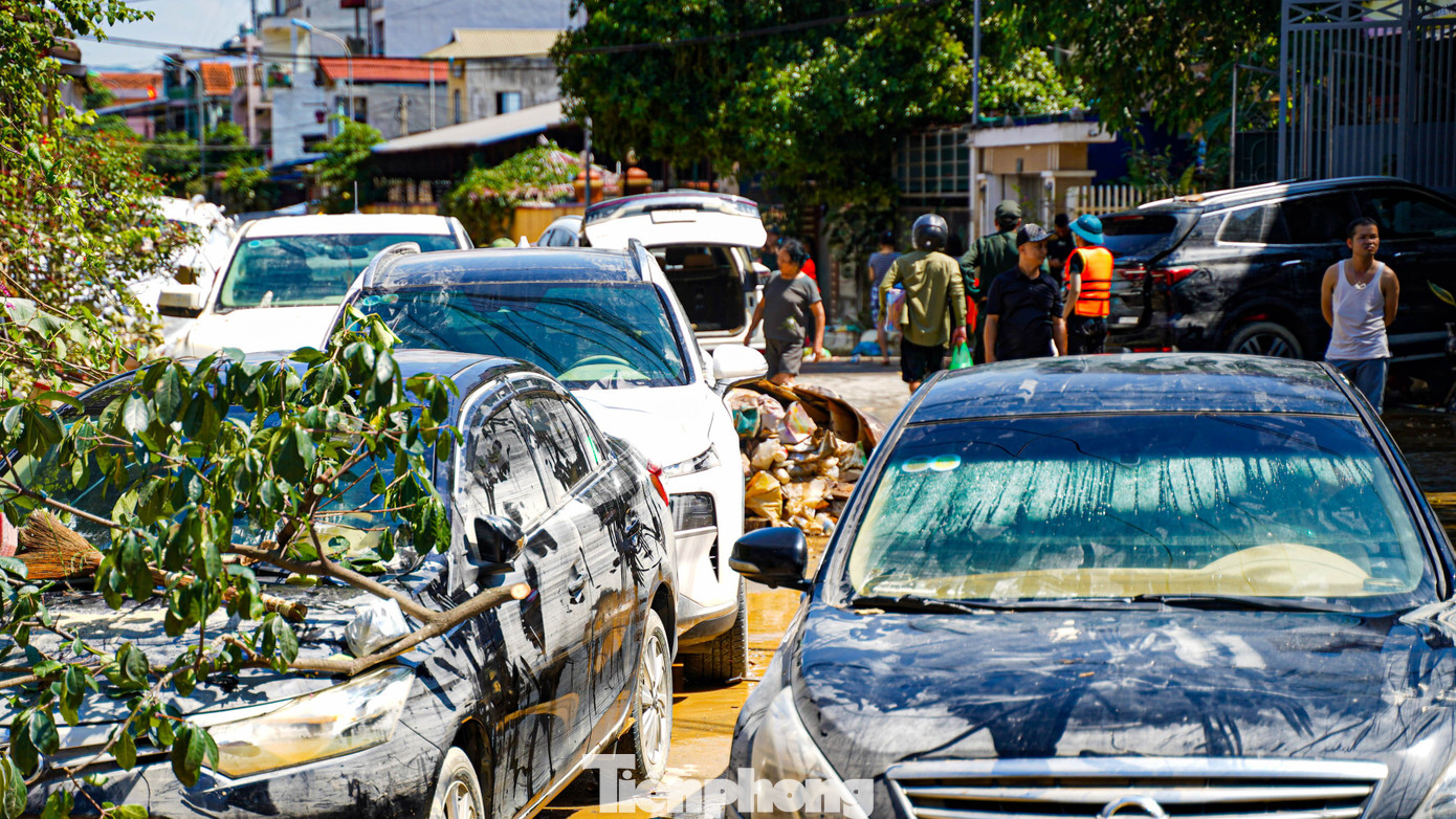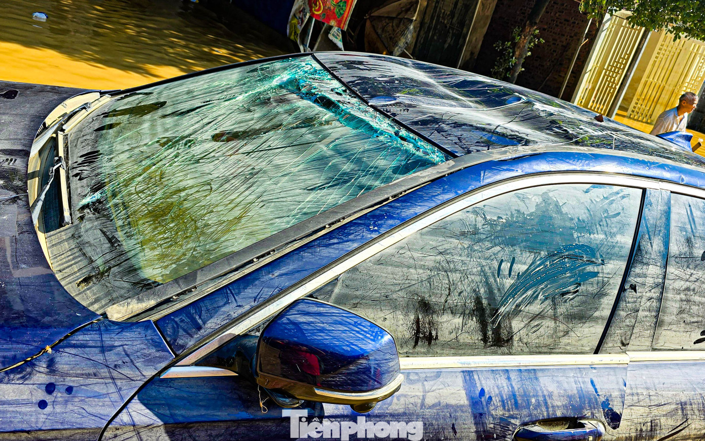 Thậm chí, kính sau của một số xe bị vỡ tung do tác động của bùn nước và vật cứng.