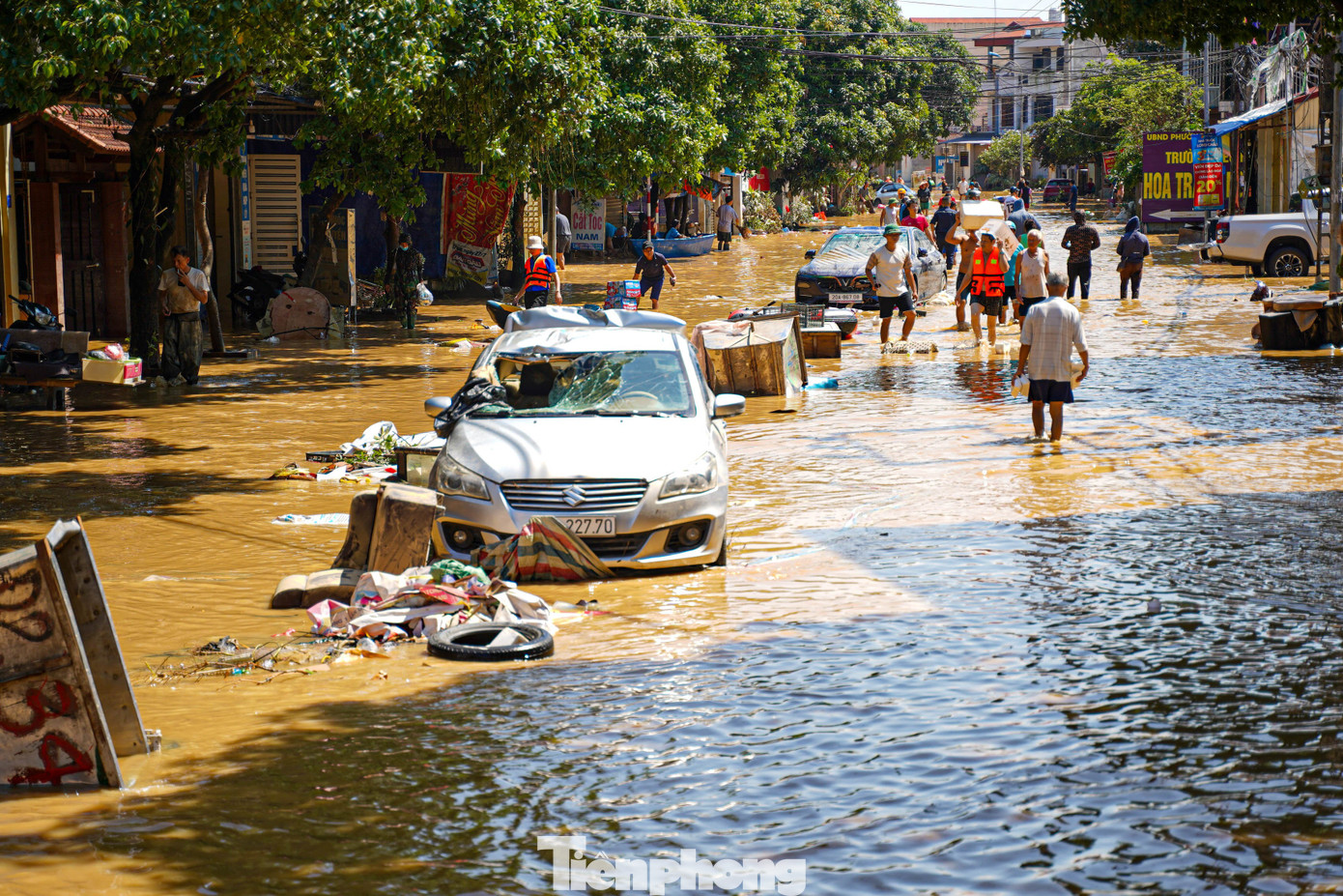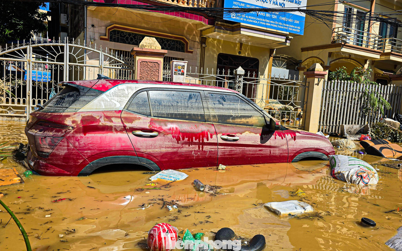 Nhiều xế hộp lộ hình sau hơn 3 ngày bị chìm nghỉm dưới đáy nước lũ, xung quanh xe bùn đất bám chặt.