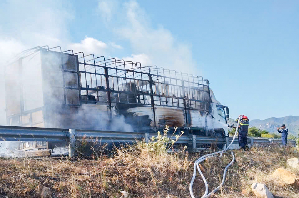 Đến 17 giờ ngày 28-3, lực lượng chức năng dập tắt hoàn toàn vụ cháy ô tô tải, đồng thời giải phóng hiện trường tuyến cao tốc Cam Lâm Vĩnh Hảo, đoạn qua xã Thuận Bắc, tỉnh Khánh Hòa.