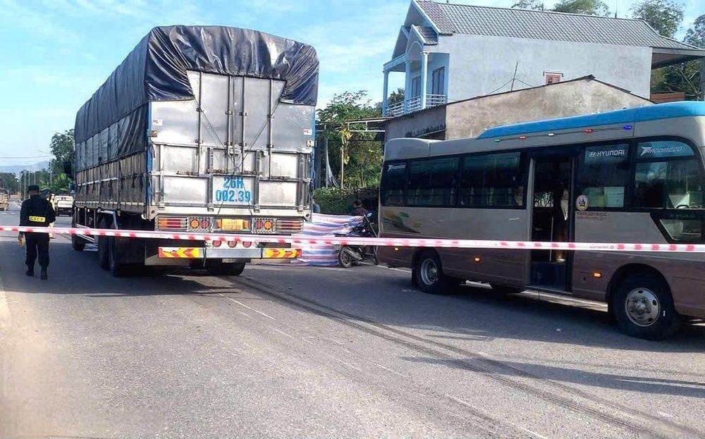 Tai nạn khiến một người đi xe máy tử vong tại chỗ. Danh tính nạn nhân đang được cơ quan chức năng làm rõ. Tại hiện trường, chiếc xe máy va chạm bị hư hỏng.