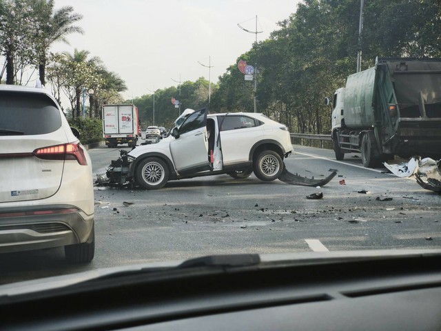 Theo thông tin ban đầu, khoảng 16h15 ngày 26/2, một vụ ô tô va chạm xe chở rác xảy ra trên đường Võ Nguyên Giáp, hướng từ sân bay Nội Bài về cầu Nhật Tân.