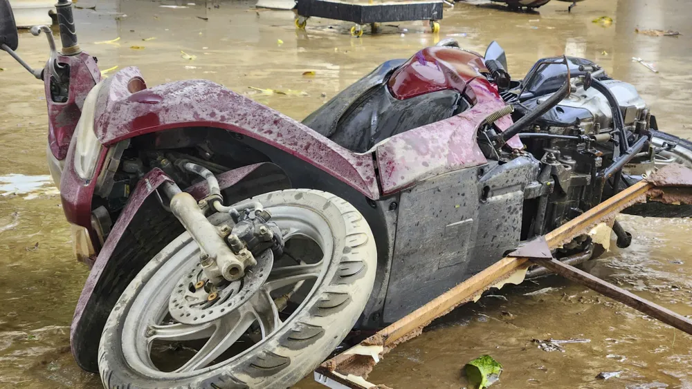 Sáng 30-10, nhiều tuyến đường, khu dân cư tại tại TP Huế đã rút nước, lộ ra nhiều xe ô tô, xe máy của người dân hư hỏng, bám đầy bùn đất.