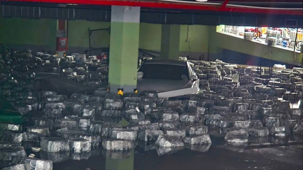 Một hầm giữ xe khác đang được triển khai hút nước.