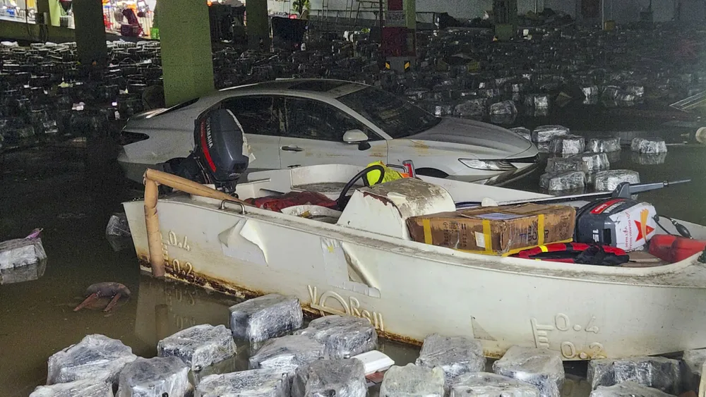 Bùn đất bao phủ xe khi nước được hút bớt khỏi hầm.