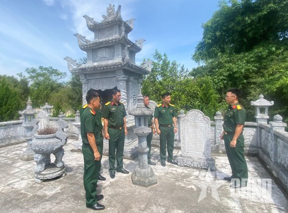 Cán bộ, nhân viên Trung đoàn 42 tham quan di tích lịch sử Khe Tù (Quảng Ninh) do đơn vị quản lý.