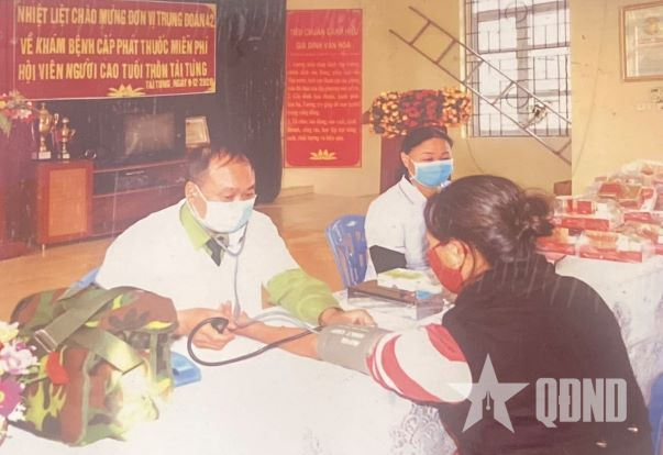 Quân y Trung đoàn 42 khám bệnh, cấp thuốc điều trị miễn phí giúp người dân thôn Tài Tùng, xã Tiên Yên, tỉnh Quảng Ninh.