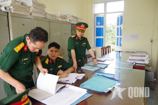 Đoàn công tác Đoàn Kinh tế-Quốc phòng 327 kiểm tra sổ sách của đơn vị.