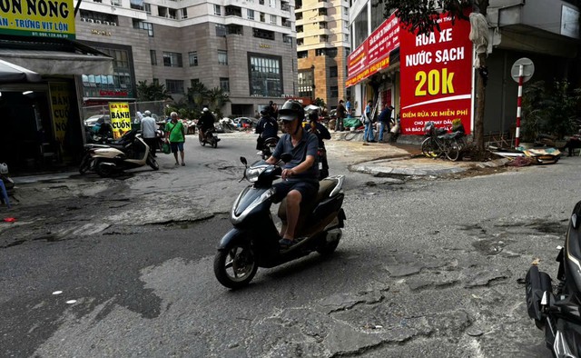 Tương tự, tuyến đường La Thành – trục giao thông quan trọng đi qua nhiều quận nội thành cũng xuất hiện nhiều đoạn xuống cấp, có ổ gà và lún cục bộ. Khi xảy ra mưa, nước đọng khiến việc quan sát trở nên khó khăn, làm tăng nguy cơ trượt ngã, va chạm.
