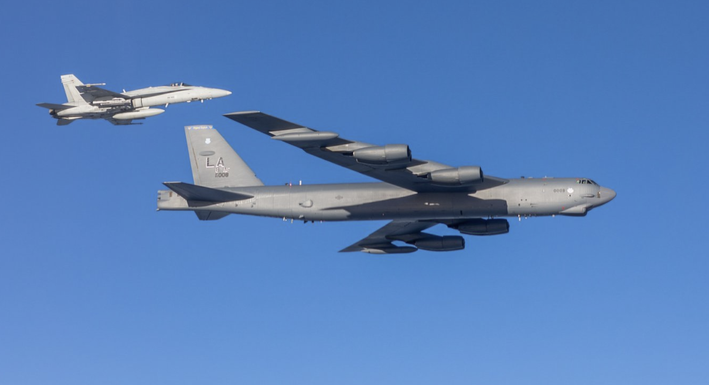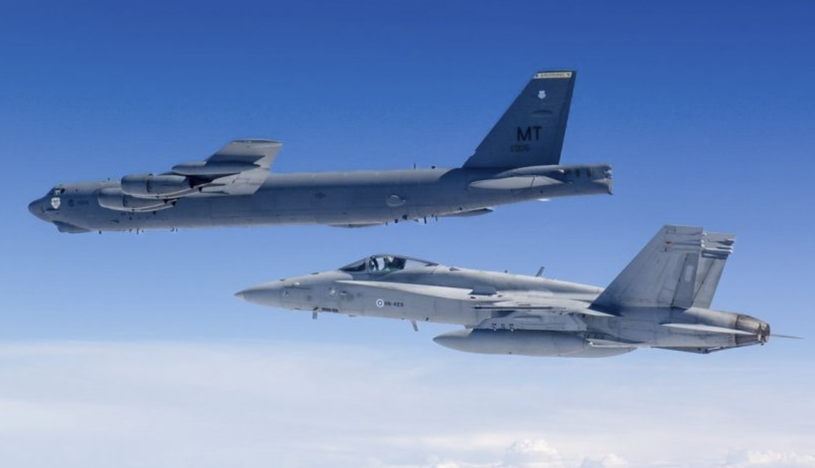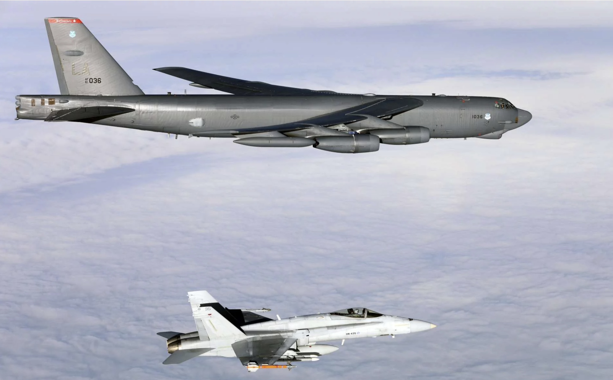 Trong toàn bộ hành trình, máy bay B-52H được hộ tống bởi các tiêm kích F/A 18 của Phần Lan, vốn đã trải qua nâng cấp để tương thích tốt hơn với hệ thống liên kết dữ liệu và tác chiến của NATO.