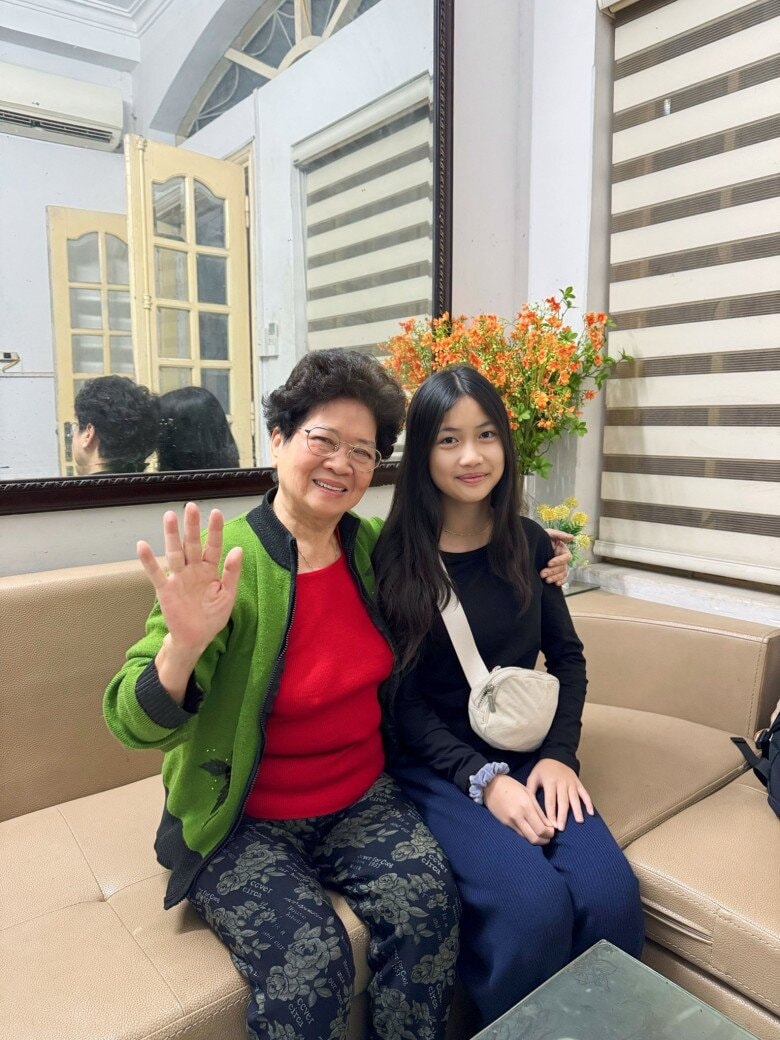 Ốc Thanh Vân và con gái chụp ảnh cùng người họ hàng thân thiết.