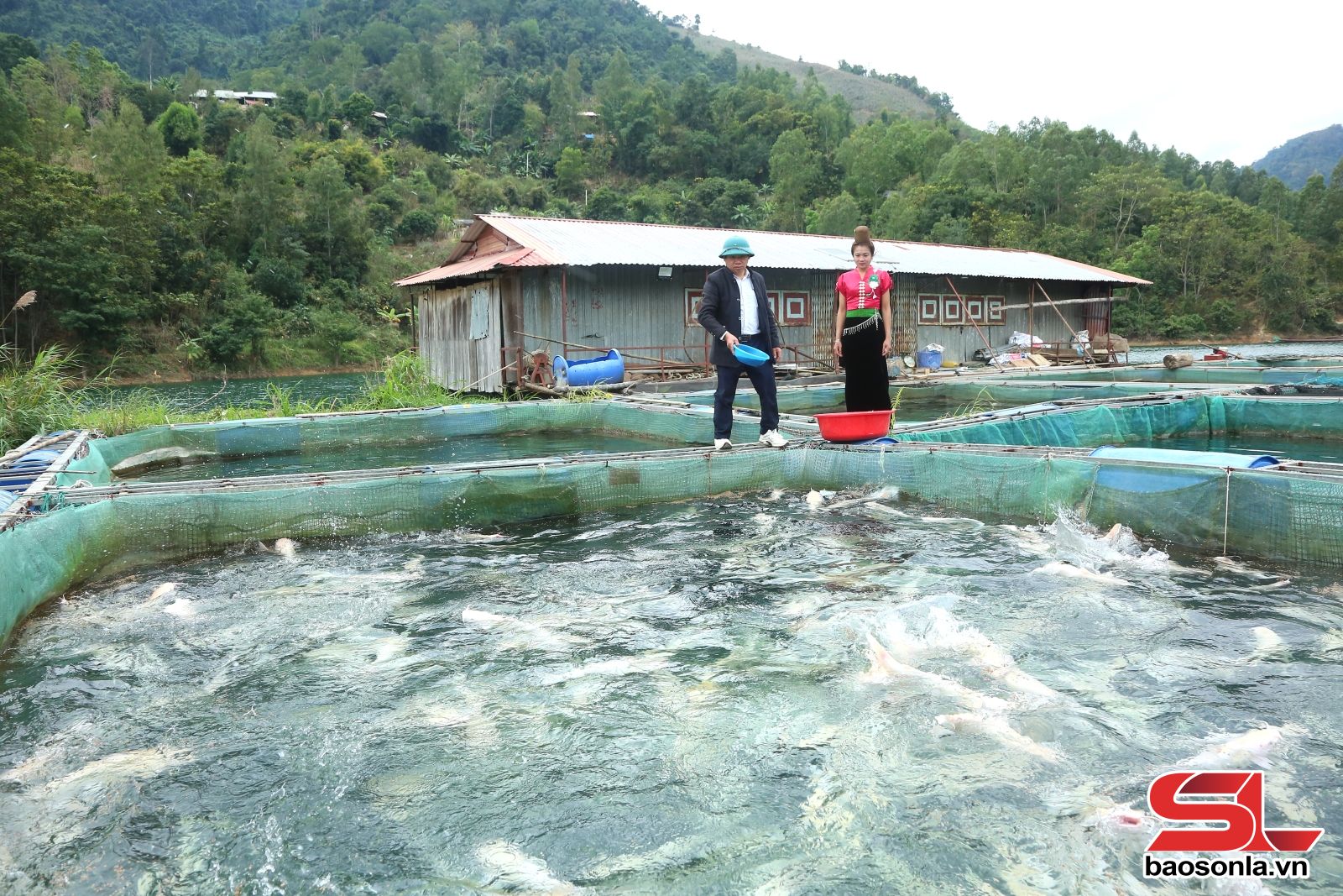 Mô hình nuôi cá lòng hồ của gia đình ông Quàng Văn Tưởng, bản Ban Xa, xã Mường Khiêng.