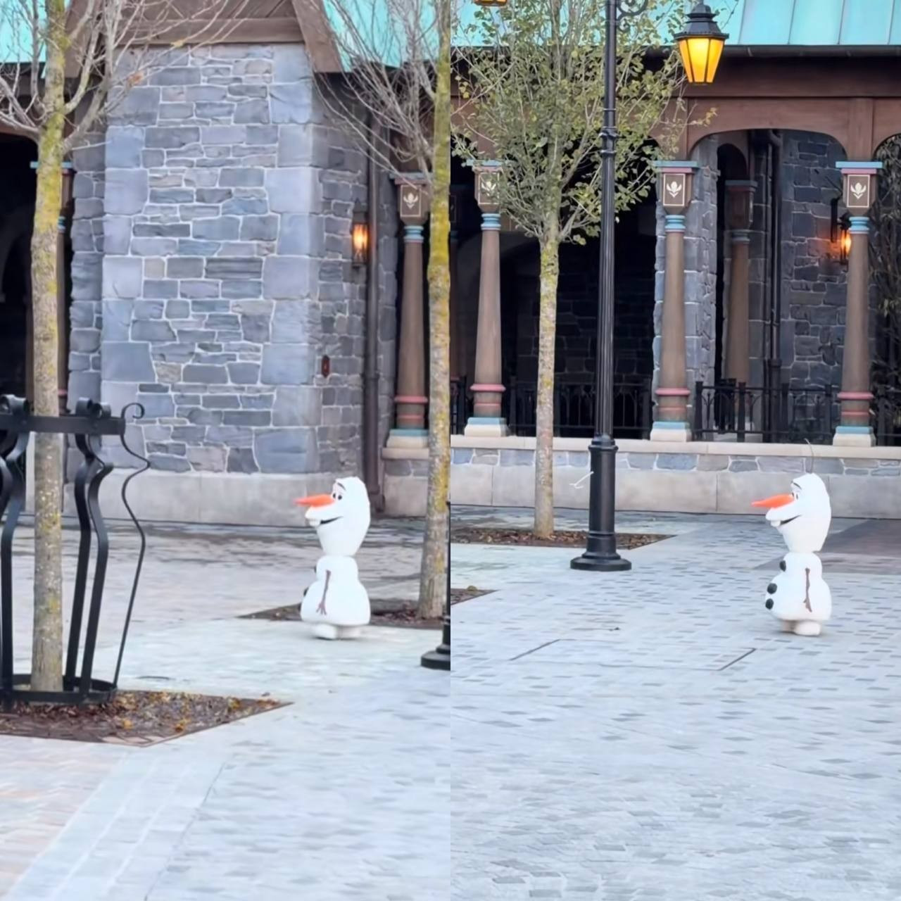 Cụ thể, một đoạn video đang gây bão trên TikTok ghi lại hình ảnh nhân vật người tuyết Olaf của phim Frozen đi lại trong khuôn viên Disneyland. Chú ta lạch bạch di chuyển, nghiêng đầu tò mò nhìn quanh, vung vẩy cành tay lá và cười toe toét đúng chuẩn nhân vật mà khán giả đã yêu thương qua màn ảnh. Đoạn video thu về gần 240 triệu lượt xem cùng nhiều lời bàn tán từ cư dân mạng.