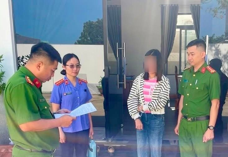 Bị can Kim Anh nghe công bố quyết định khởi tố (Ảnh: CACC)
