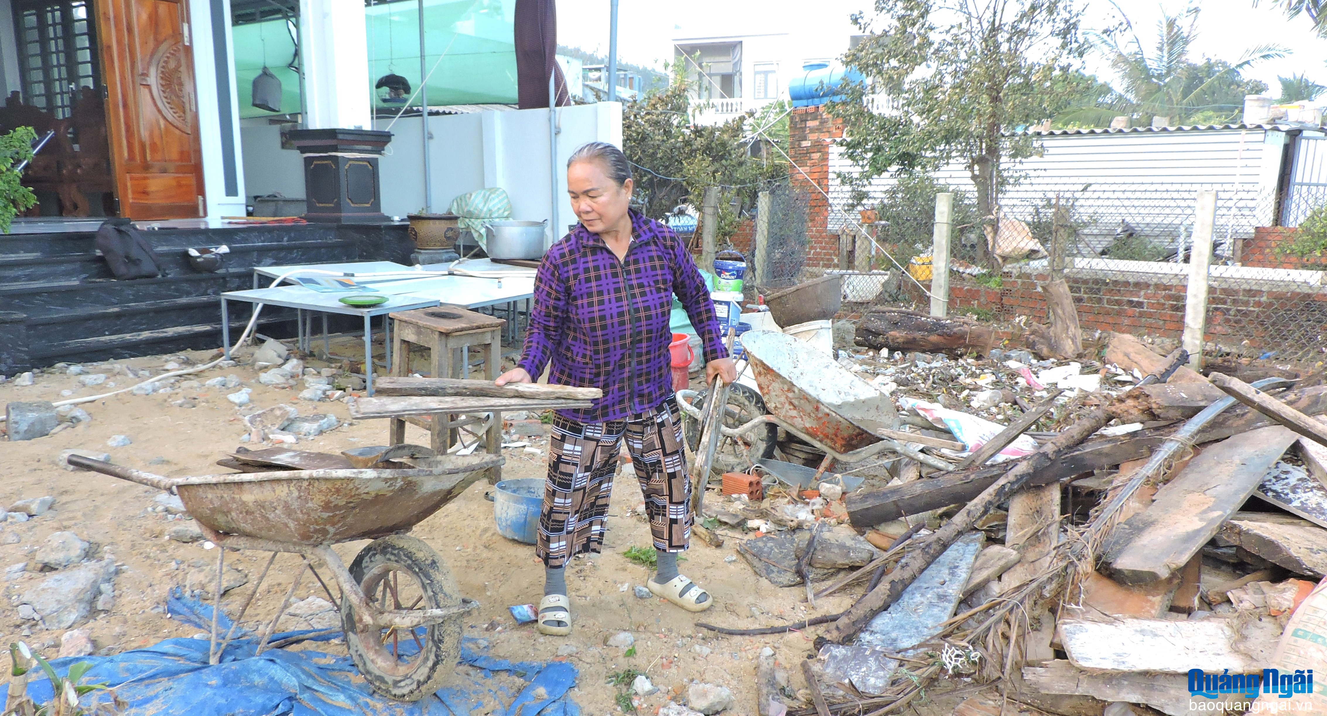 Ông Nguyễn Hoàng, ở tổ dân phố Thạch By 2, phường Sa Huỳnh bộc bạch, nhà tôi bị sóng đánh sập một mảng, đồ đạc hư hỏng, nước cuốn trôi. Nhưng nhờ sự động viên, giúp đỡ kịp thời của chính quyền địa phương, gia đình tôi sớm sửa chữa nhà ở.