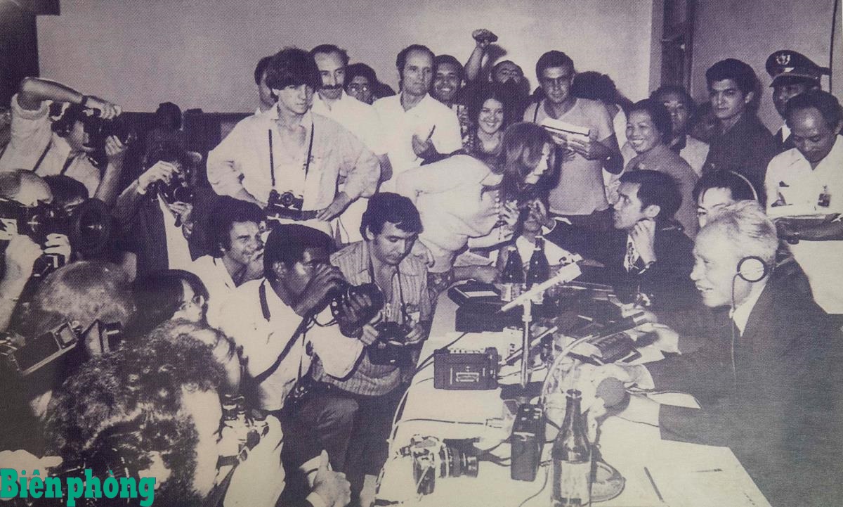 Cố Thủ tướng Phạm Văn Đồng nói tiếng Pháp rất trôi chảy trong các buổi họp báo quốc tế và luôn đưa ra những câu trả lời sắc sảo, vì vậy ông được báo chí quốc tế ca ngợi. Ảnh: Tư liệu