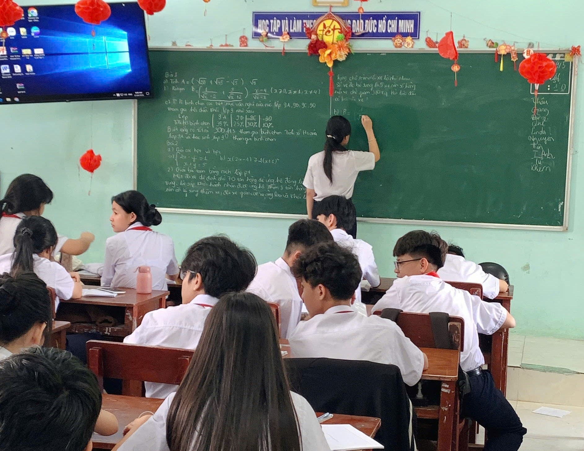 Trong quá trình học, Tổ Toán 9 của nhà trường đã thống nhất biên soạn bộ đề, tạo điều kiện cho học sinh ôn luyện từ kho đề do giáo viên xây dựng; có các bài thi, bài kiểm tra, sau khi làm bài học sinh sẽ tự hệ thống lỗi bài làm của mình rồi chia sẻ với bạn. Giáo viên sẽ sửa để học sinh đối chiếu, rút kinh nghiệm, tránh mắc phải những lỗi mình đã gặp hoặc lỗi bạn đã gặp.