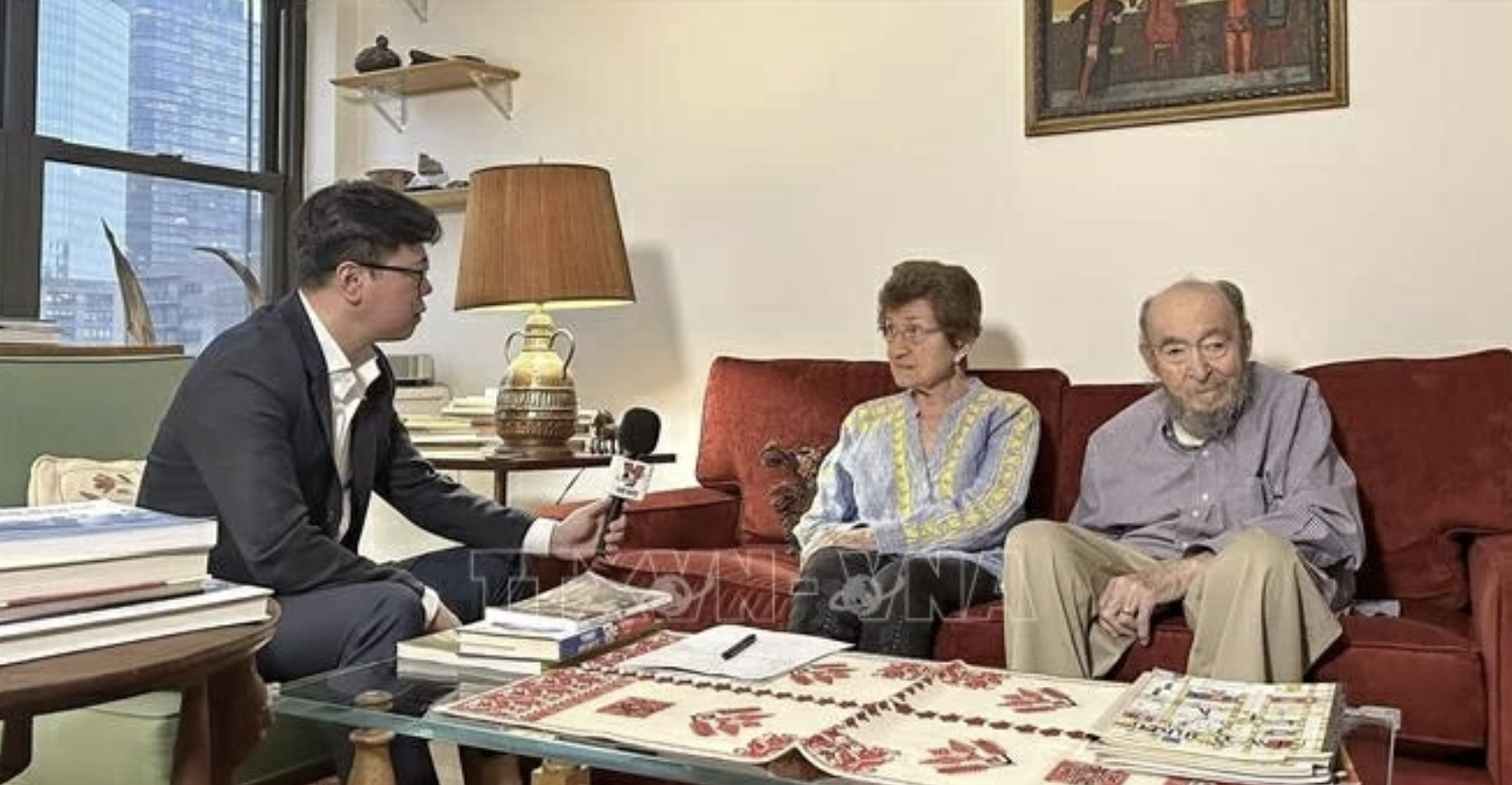 Bà Cora và ông Peter Weiss trả lời phỏng vấn báo chí Việt Nam, tháng 1/2023. Nguồn: TTXVN.