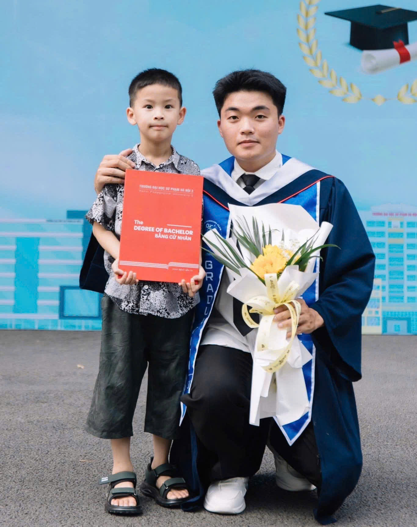 Phúc Sơn chụp ảnh cùng cháu nhỏ dịp tốt nghiệp đại học (Ảnh: NVCC)