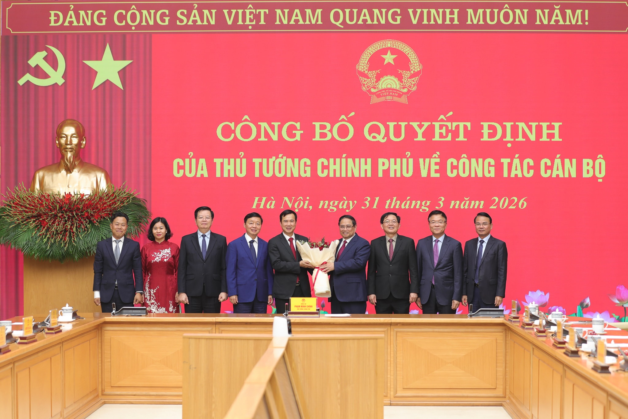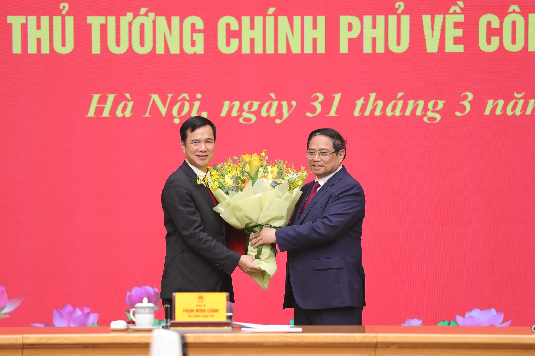 Thủ tướng Phạm Minh Chính tặng hoa Tân Giám đốc ĐHQGHN