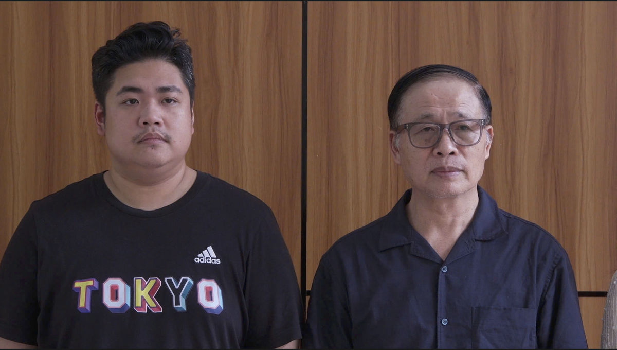 Hai bố con ông Vũ Minh. Châu