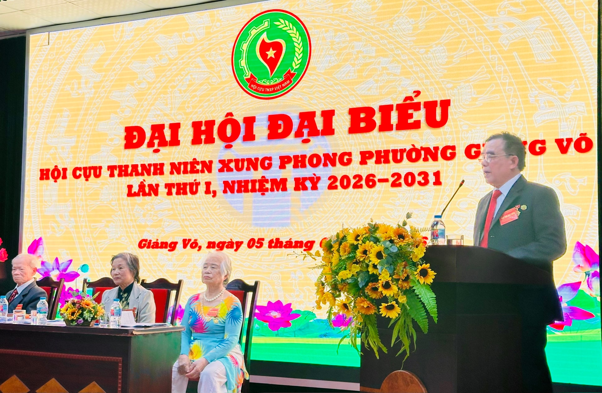 Phát biểu chỉ đạo tại Đại hội, Phó Chủ tịch Hội Cựu TNXP thành phố Hà Nội Đỗ Văn Thành, Trưởng ban Xây dựng Đảng phường Giảng Võ Vũ Thị Thêu ghi nhận và biểu dương tinh thần đoàn kết, trách nhiệm của tập thể Hội trong giai đoạn vừa qua.