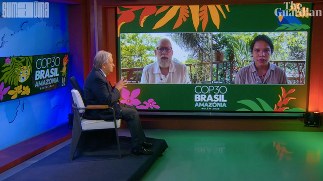 Tổng Thư ký Liên Hợp Quốc António Guterres trong cuộc phỏng vấn độc quyền vào tháng 10/2025 với tờ The Guardian và hãng tin Sumáuma trước thềm hội nghị COP30 ở Brazil.