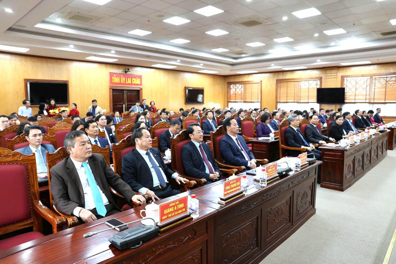 Dự Hội nghị còn có bà Giàng Páo Mỷ - Ủy viên Ban Chấp hành Trung ương Đảng, Chủ tịch HĐND tỉnh, Trưởng Đoàn đại biểu Quốc hội tỉnh Lai Châu; ông Lê Minh Ngân - Bí thư Tỉnh ủy Lai Châu; ông Trần Tiến Dũng - Bí thư Tỉnh ủy Điện Biên; các đồng chí trong Đoàn công tác của Ban Tổ chức Trung ương; các đồng chí Ủy viên Ban Thường vụ Tỉnh ủy, Thường trực HĐND, UBND tỉnh, đại diện lãnh đạo các sở, ban, ngành tỉnh Lai Châu, tỉnh Điện Biên...