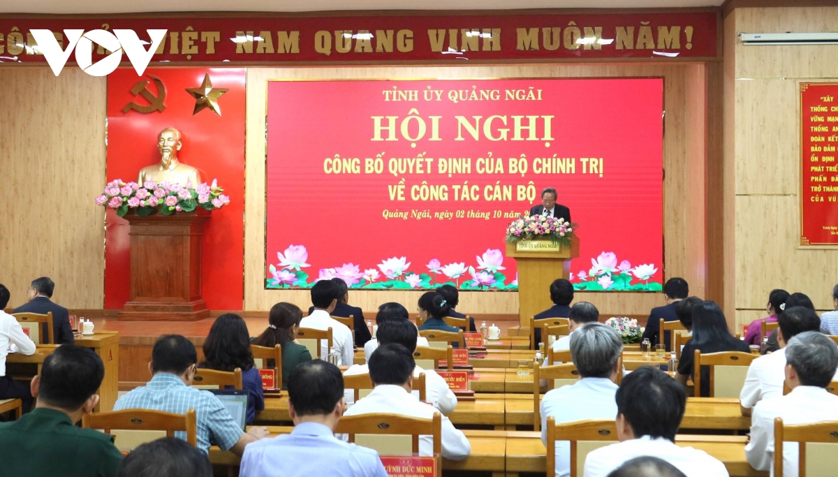 Sáng 2/10, Tỉnh ủy Quảng Ngãi tổ chức Hội nghị công bố quyết định của Bộ Chính trị về công tác cán bộ. Ông Lê Minh Hưng, Ủy viên Bộ Chính trị, Bí thư Trung ương Đảng, Trưởng Ban Tổ chức Trung ương dự hội nghị.