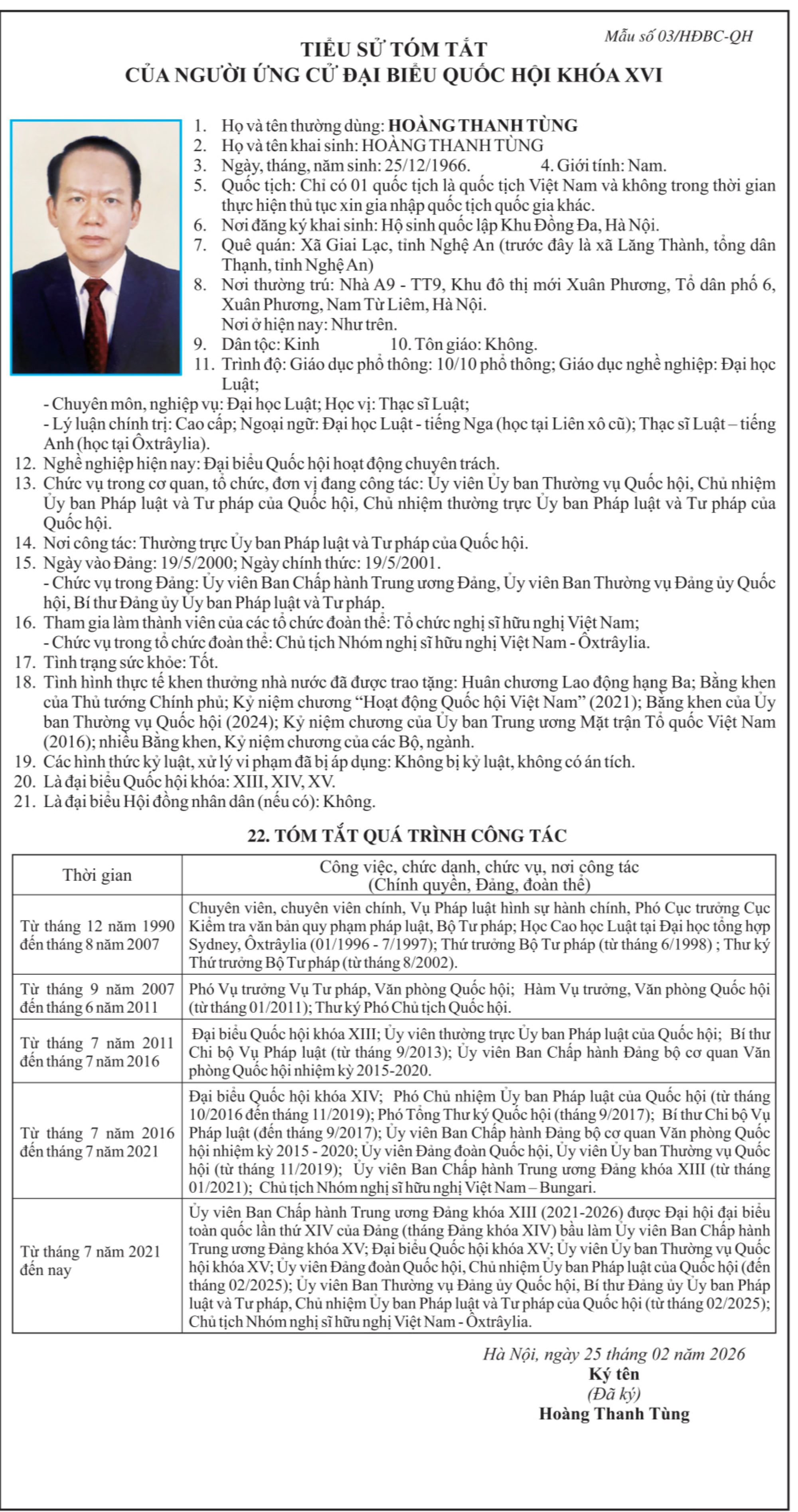 Ông Hoàng Thanh Tùng, Chủ nhiệm Ủy ban Pháp luật và Tư pháp của Quốc hội trình bày chương trình hành động ứng cử ĐBQH khóa XVI. Ảnh: ĐT