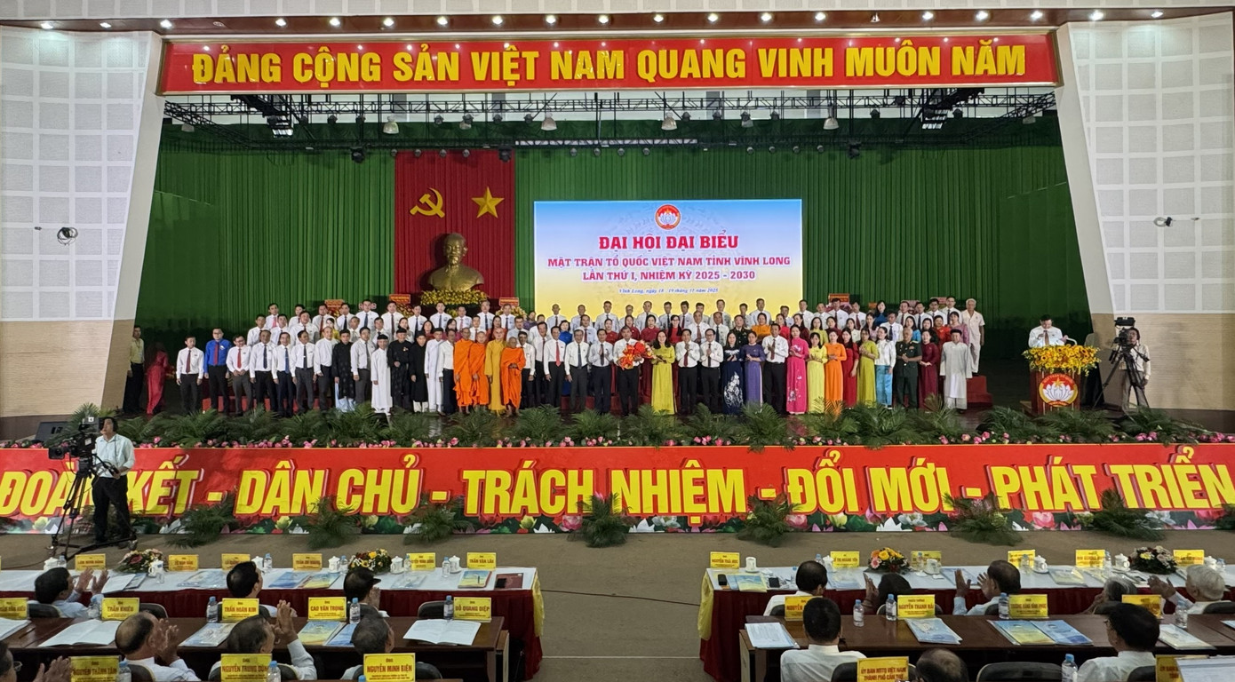 Trong hai ngày 18 - 19/11, Ủy ban Mặt trận Tổ quốc (MTTQ) Việt Nam tỉnh Vĩnh Long tổ chức Đại hội Đại biểu lần thứ I, nhiệm kỳ 2025-2030. Đây là đại hội đầu tiên sau khi hợp nhất 3 tỉnh Vĩnh Long, Trà Vinh và Bến Tre, đánh dấu giai đoạn mới phát triển khối đại đoàn kết toàn dân. Tỉnh Vĩnh Long mới có dân số 3,38 triệu người, dân tộc thiểu số chiếm hơn 11%, tín đồ tôn giáo chiếm hơn 33%.