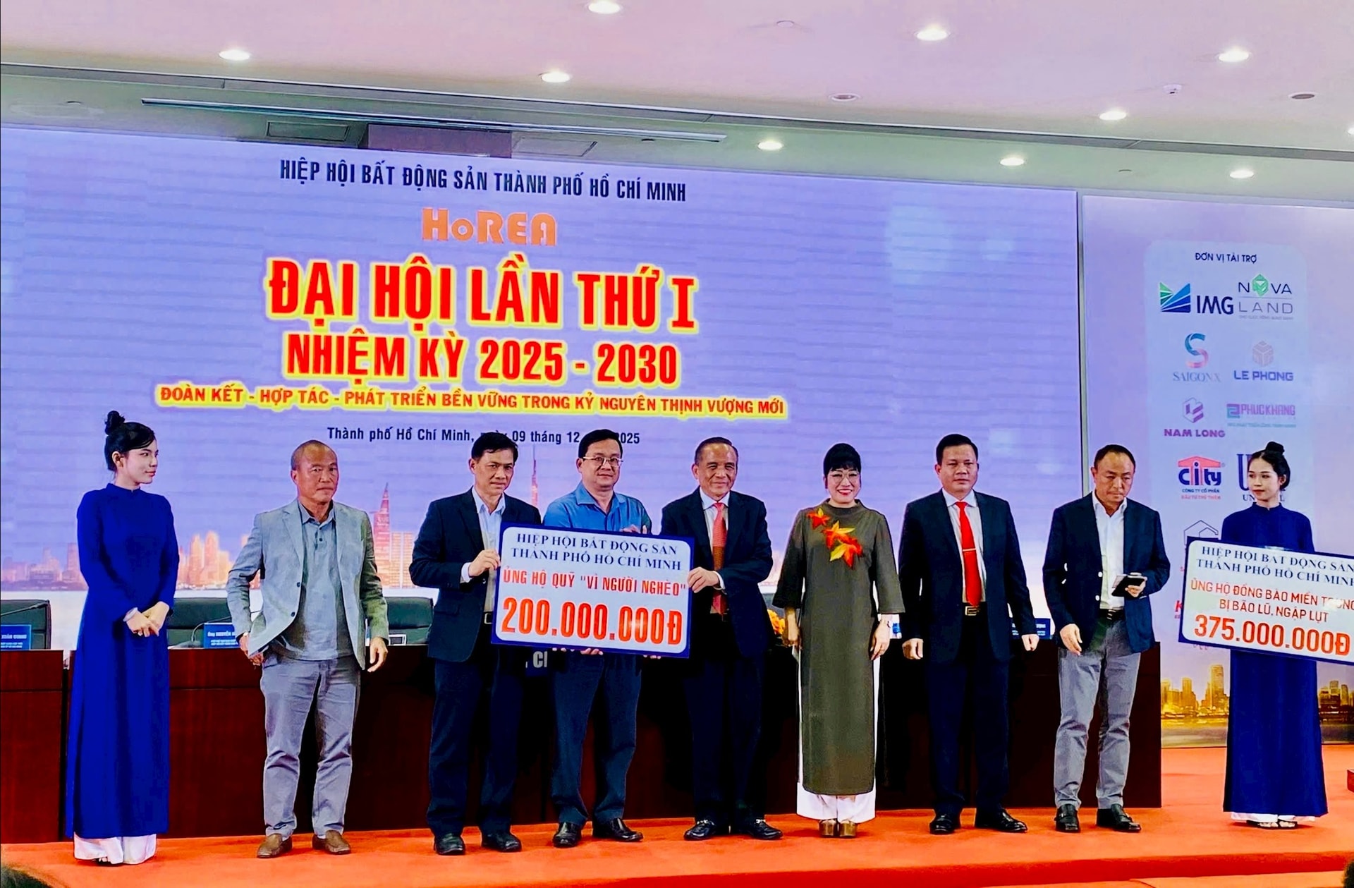 Bên cạnh hoạt động chuyên môn, trong khuôn khổ đại hội, HoREA đã vận động và trao tổng cộng 575 triệu đồng ủng hộ Quỹ “Vì người nghèo” TP.HCM và đồng bào miền Trung bị ảnh hưởng bởi thiên tai, thể hiện trách nhiệm xã hội của cộng đồng doanh nghiệp bất động sản.