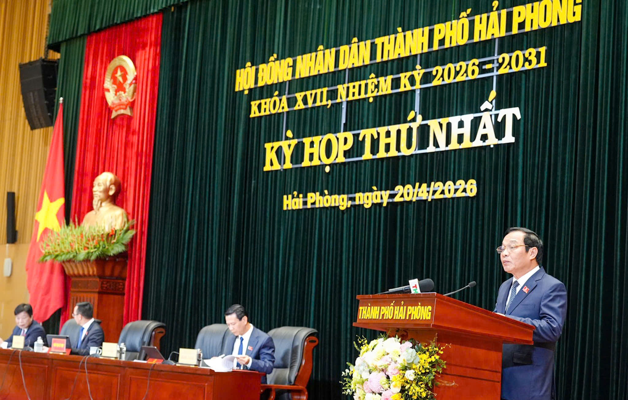 Nhìn lại nhiệm kỳ 2021-2026, tân Chủ tịch HĐND thành phố khóa XVII khẳng định: thành phố Hải Phòng và tỉnh Hải Dương đã trải qua giai đoạn đầy thử thách trong bối cảnh tình hình thế giới và trong nước diễn biến nhanh, phức tạp, khó lường, đặc biệt là chịu tác động nặng nề của đại dịch Covid-19 và cơn bão Za-gi. Với tinh thần đoàn kết, bản lĩnh và sự đồng lòng của cả hệ thống chính trị, hai địa phương trước hợp nhất vẫn giữ vững ổn định, bảo vệ được thành quả phát triển trên mọi lĩnh vực.