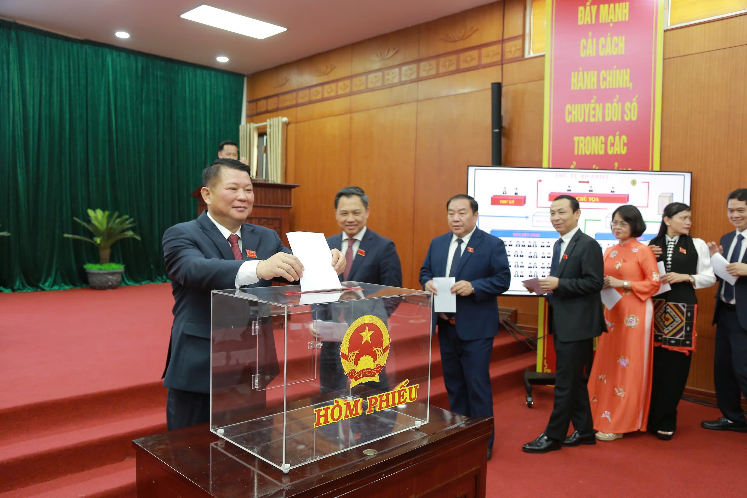 Sau khi nghe báo cáo kết quả bầu cử và xác nhận tư cách đại biểu HĐND tỉnh, kỳ họp đã tiến hành bầu các chức danh chủ chốt với tỷ lệ tín nhiệm cao.
