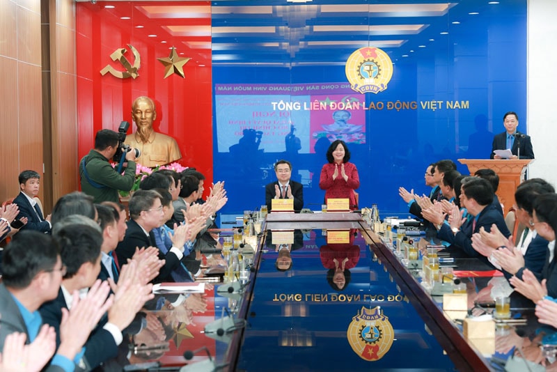 Tân Bí thư Đảng ủy Tổng Liên đoàn Lao động Việt Nam cũng gửi lời cảm ơn và chúc mừng ông Nguyễn Đình Khang trong thời gian gần 8 năm đảm nhận cương vị Bí thư Đảng đoàn, sau này là Bí thư Đảng ủy Tổng Liên đoàn Lao động Việt Nam đã dày công gây dựng, vun đắp các công việc của Tổng Liên đoàn để có được tầm vóc như hiện nay.