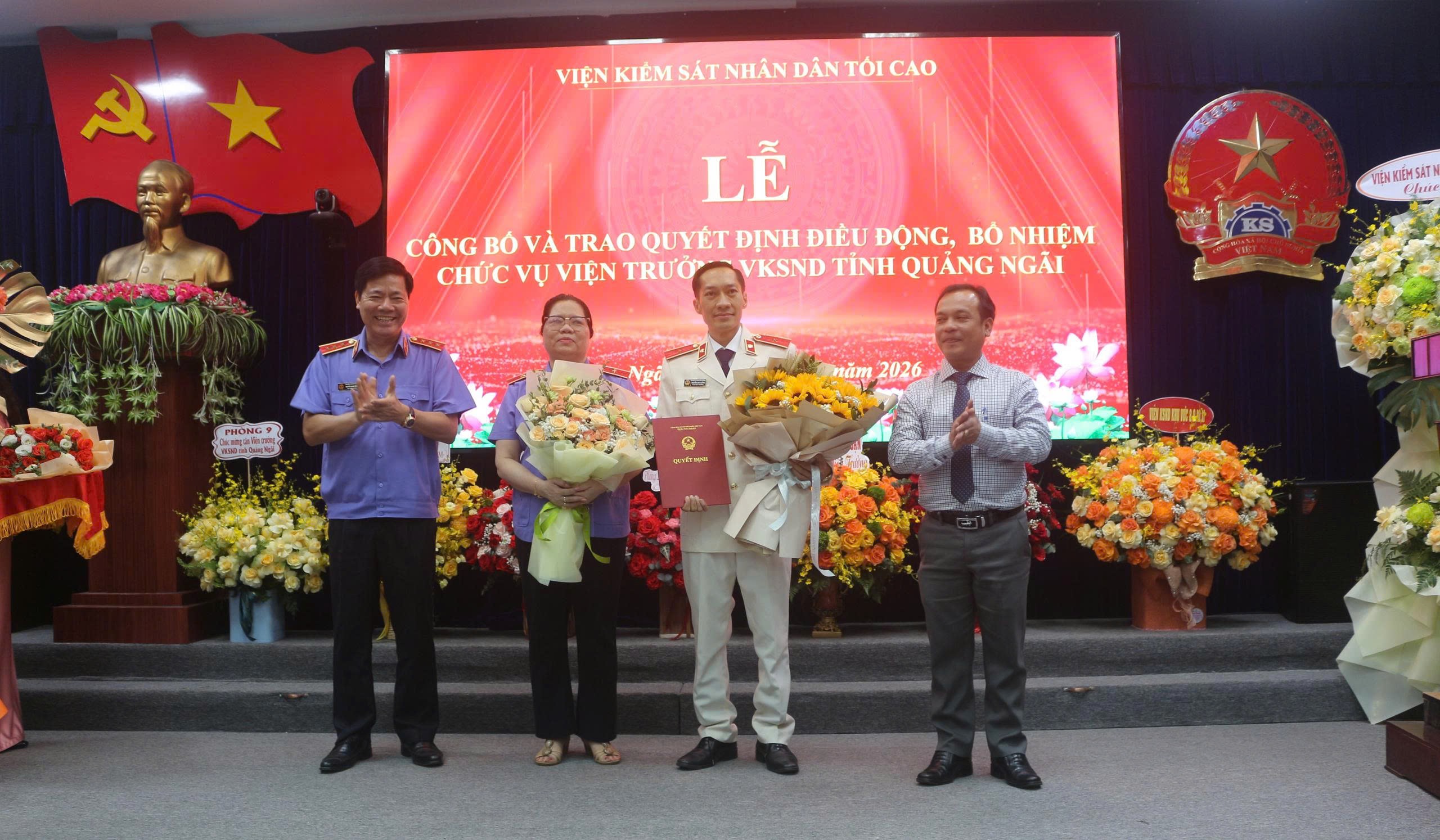 Theo đó, VKSND Tối cao điều động, bổ nhiệm ông Nguyễn Cao Cường, Kiểm sát viên trung cấp, Phó Viện trưởng VKSND tỉnh Lâm Đồng giữ chức vụ Viện trưởng VKSND tỉnh Quảng Ngãi. Thời hạn bổ nhiệm là 5 năm, kể từ ngày 10-4-2026.