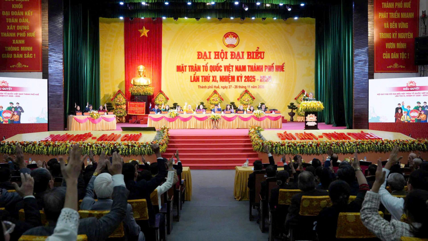 Trong hai ngày 27 và 28/11, Đại hội đại biểu MTTQ Việt Nam thành phố Huế lần thứ XI, nhiệm kỳ 2025 - 2030, đã được tổ chức với sự tham dự của 500 đại biểu, gồm 300 đại biểu chính thức và 200 đại biểu khách mời, đại diện cho các tầng lớp nhân dân, các dân tộc, tôn giáo trên địa bàn. Dự đại hội có lãnh đạo Trung ương và TP Huế.