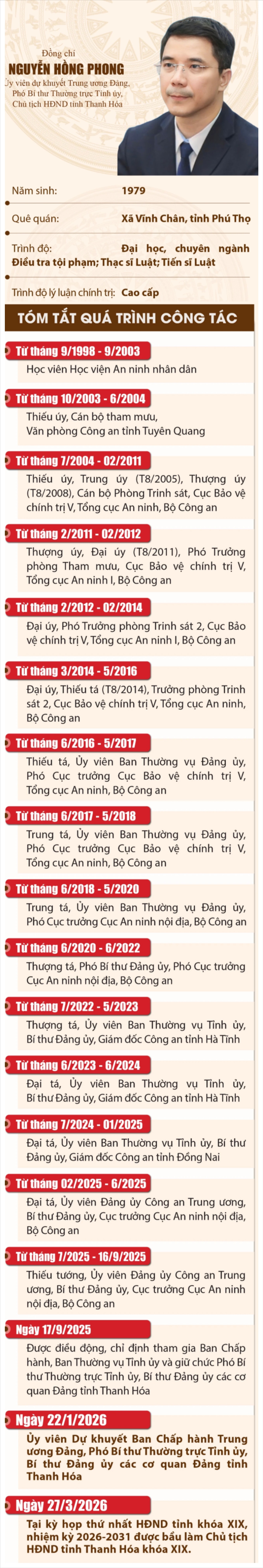 Dưới đây là tiểu sử Phó Bí thư Thường trực Tỉnh ủy, Chủ tịch HĐND tỉnh Thanh Hóa Nguyễn Hồng Phong.