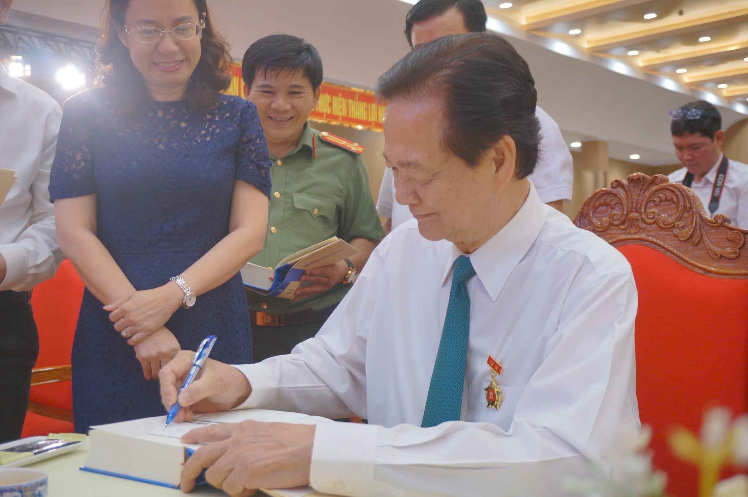 Nguyên Thủ tướng Nguyễn Tấn Dũng ký tặng sách cho đại biểu. Ảnh: Kim Ngân.