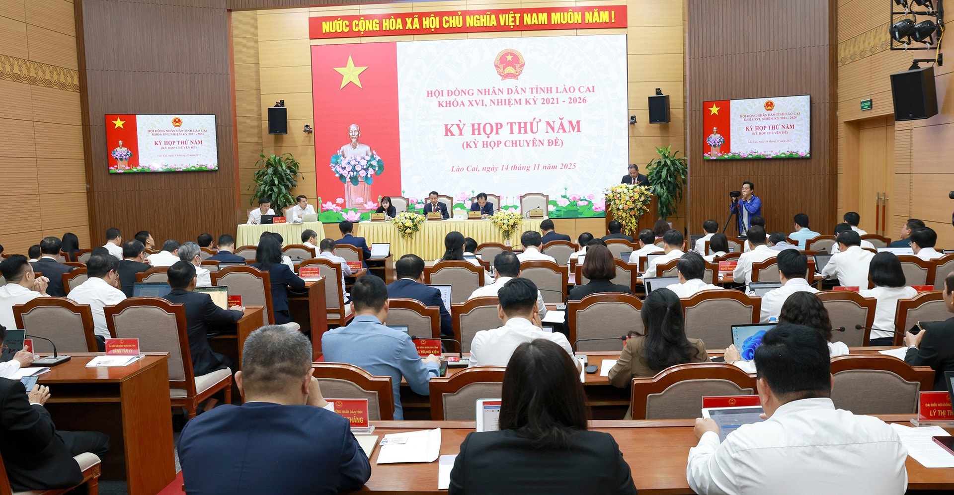 Cùng với đó, tiếp tục đổi mới, nâng cao hiệu năng, hiệu lực, hiệu quả hoạt động của UBND tỉnh; xây dựng chính quyền địa phương 2 cấp của tỉnh vững mạnh toàn diện, liêm chính, phục vụ, kiến tạo, hành động quyết liệt vì lợi ích của người dân và doanh nghiệp, góp phần sớm hiện thực hóa mục tiêu xây dựng tỉnh Lào Cai trở thành cực tăng trưởng, trung tâm kết nối giao thương liên kết giữa Việt Nam và các nước ASEAN với vùng Tây Nam - Trung Quốc, phát triển theo hướng “xanh, hài hòa, bản sắc, hạnh phúc”.