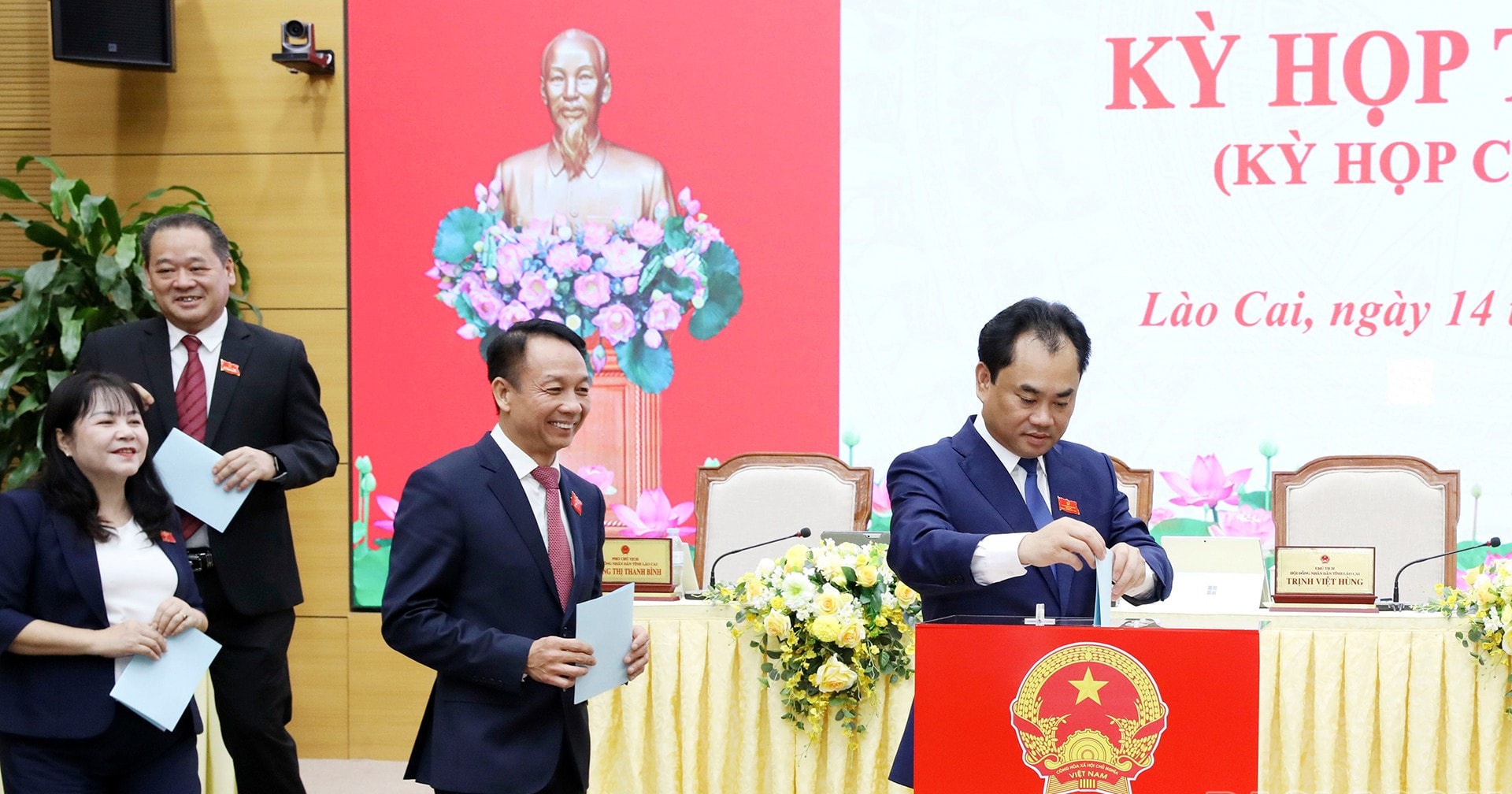 Các đại biểu bỏ phiếu bầu chức danh Chủ tịch UBND tỉnh Lào Cai nhiệm kỳ 2021 - 2026