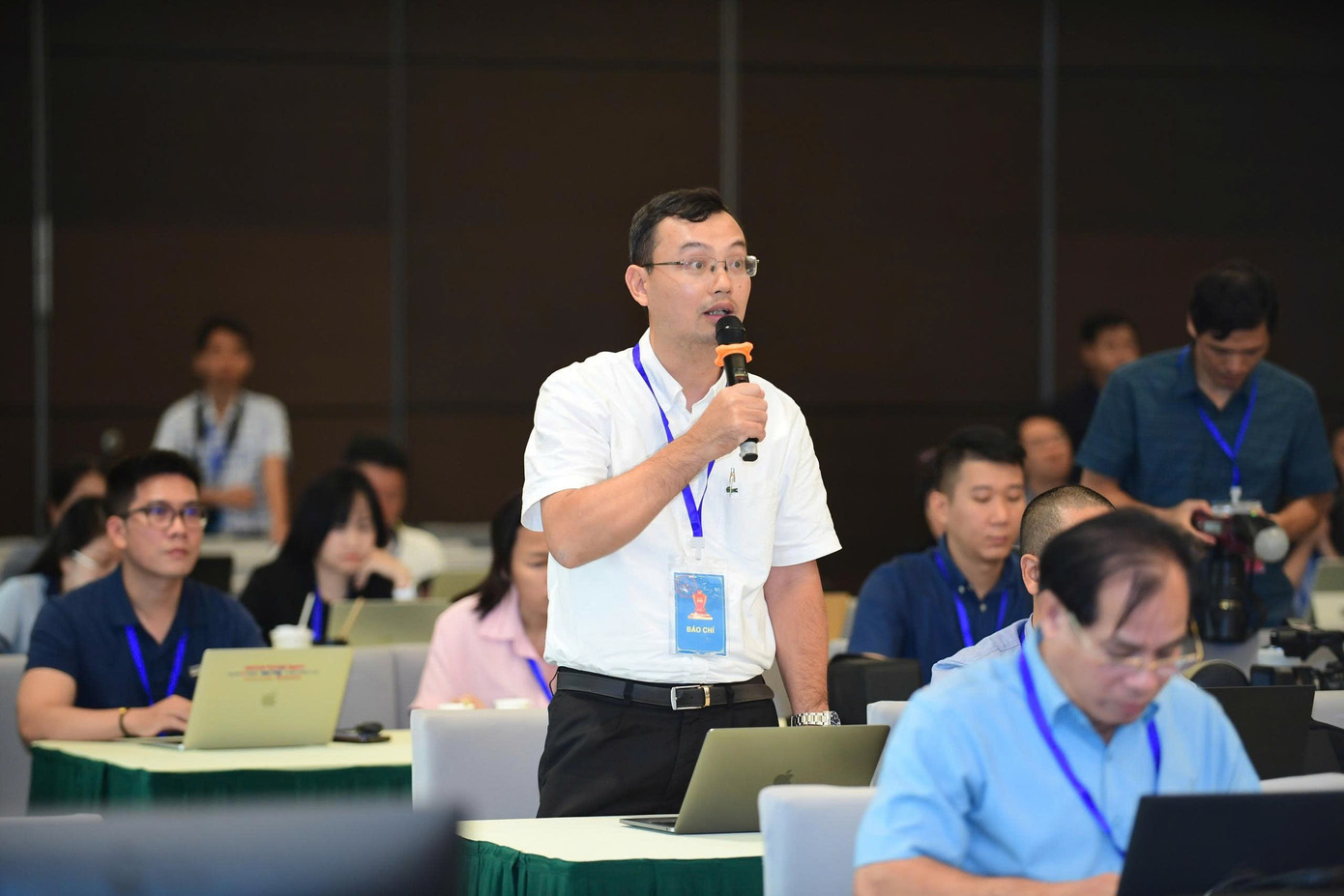 Nhà báo Nguyễn Ngọc Tiến - Trưởng Ban Thời sự Báo Tiền Phong - đặt câu hỏi tại họp báo. Ảnh: PV.